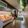 - Muebles, saco de boxeo, y zona de ejercicio en el pasillo exterior
